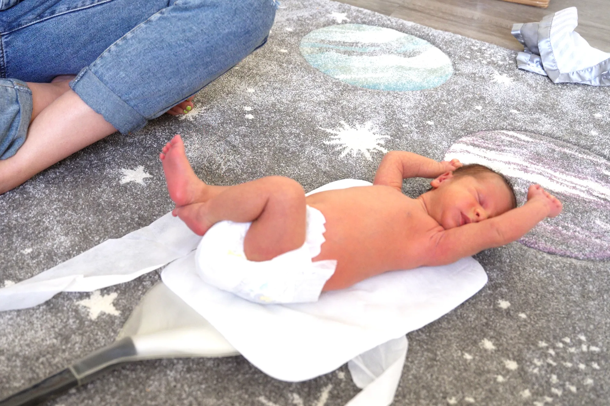 Remove all of baby's clothing except for a diaper. It is important that baby's skin is exposed to the light panel.