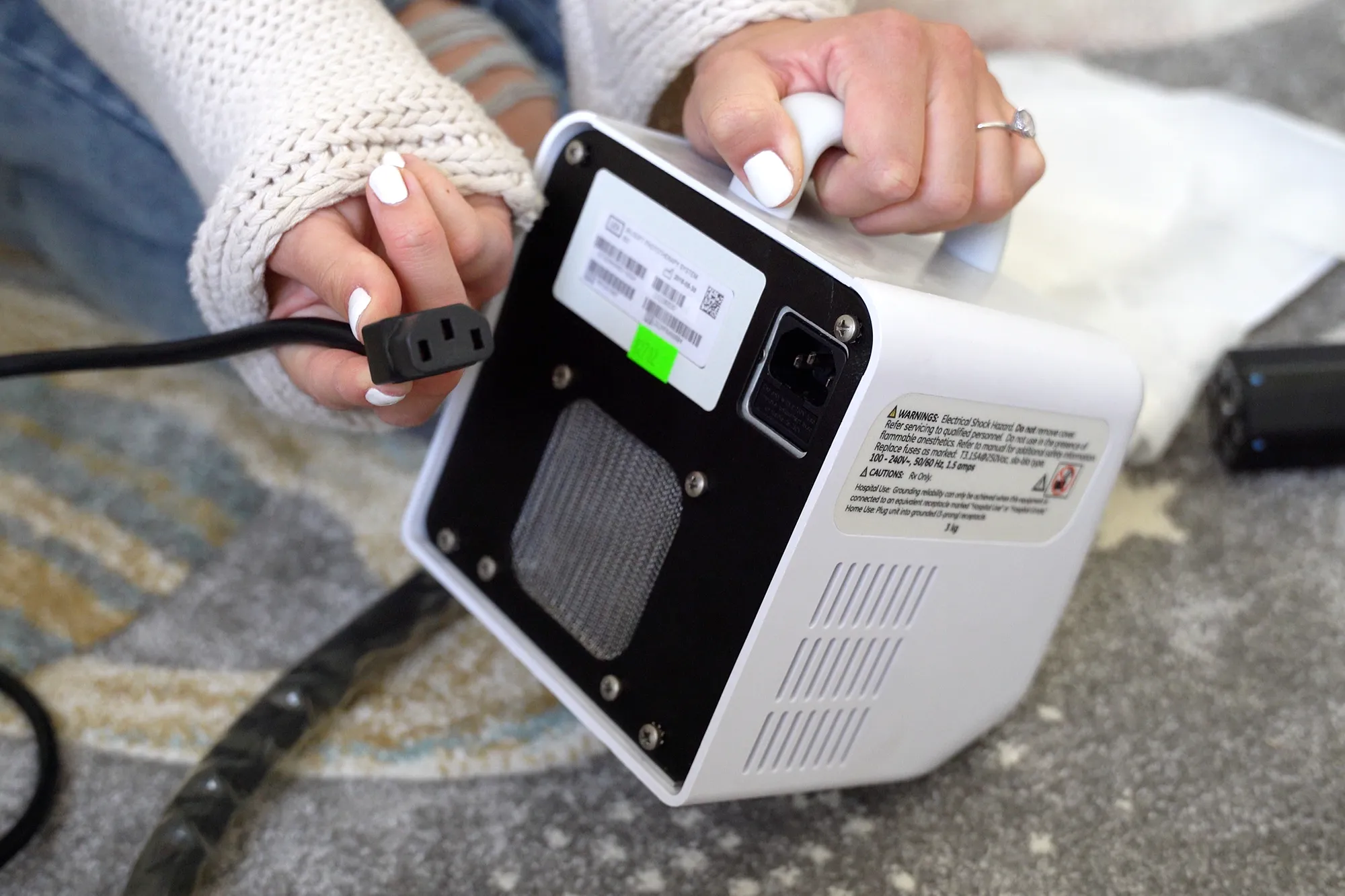 Plug the power cable into the back of the power supply. Plug the power supply into the wall.